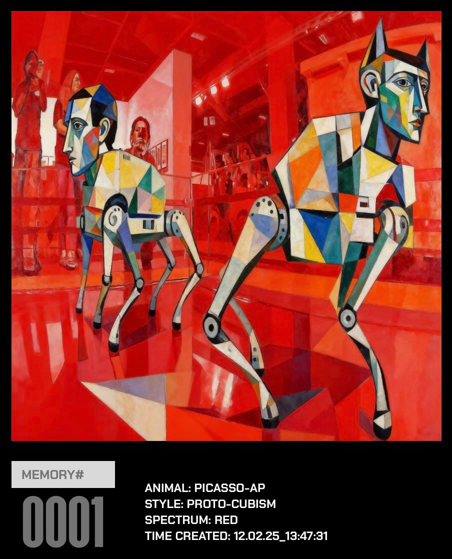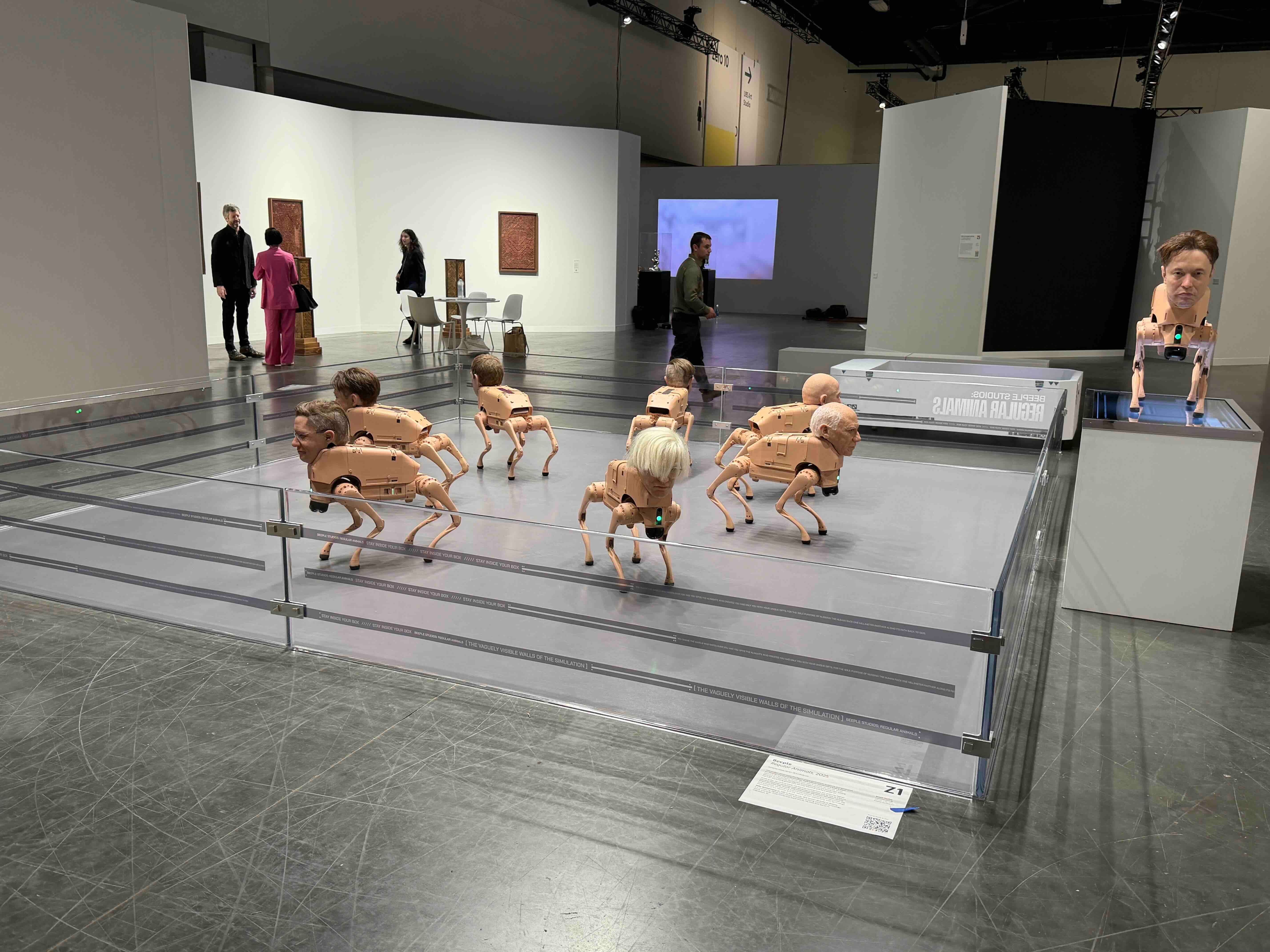 Beeple also contends that Regular Animals challenge the way we think about art. The artist’s statement that accompanied the show asks, “What if the act of looking at art were no longer a one-way encounter, but part of a feedback loop in which the artwork observes, learns, and remembers us in return?” This is an interesting question. The dogs are both AI creatures and “artworks” that consume what is around them and turn these into “memories” that they excrete or "share with us. In this encounter, the viewer and the robot are both being shaped by (or learning from) their experience with one another. Beeple proposes that Regular Animals “invites us to reflect on how meaning is made – and unmade – when the tools that record our world begin to form their own worlds in response.”