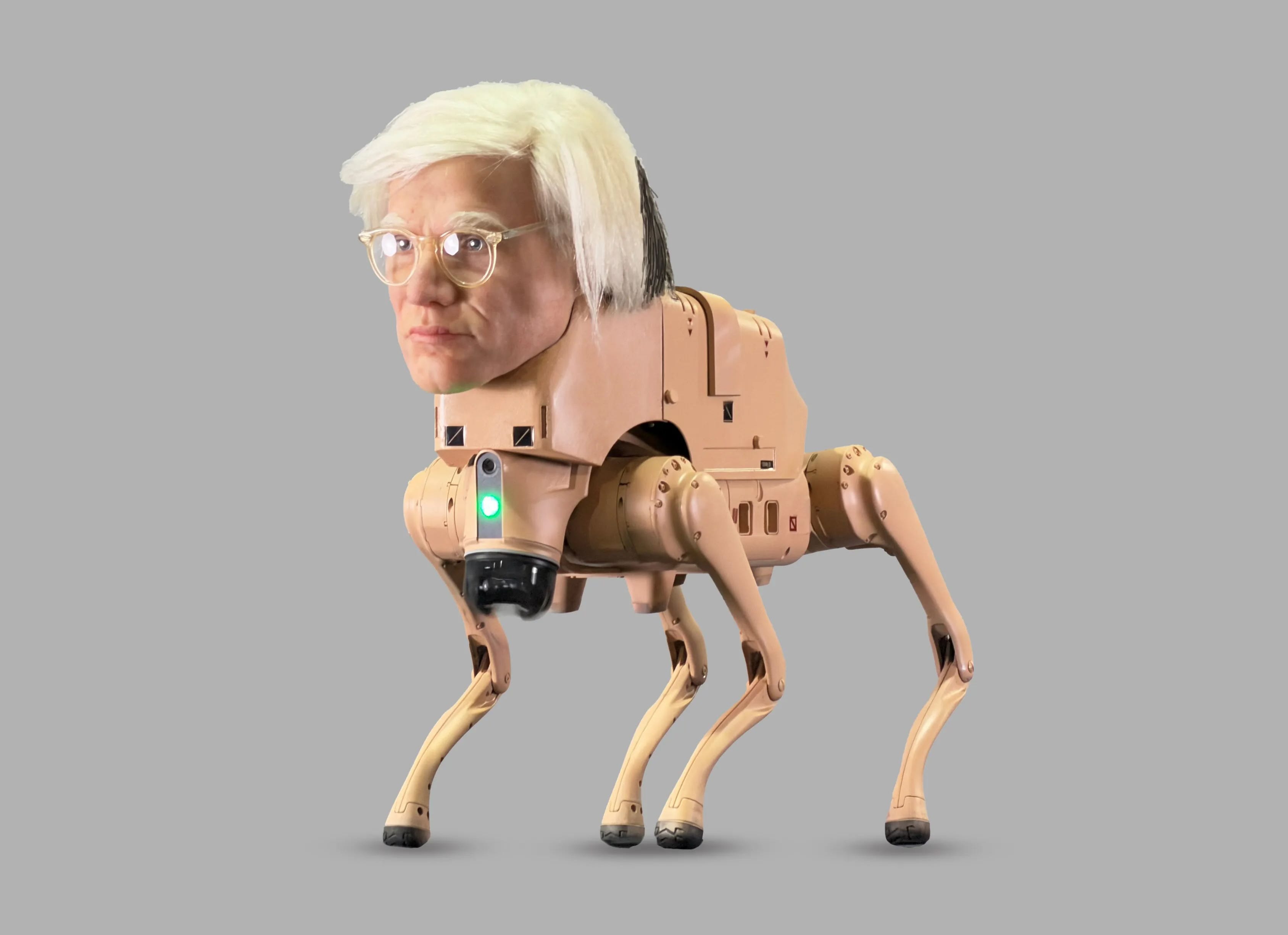 If you haven’t seen them yet you likely live on another planet. The internet is abuzz with images and video clips of robotic, pooping, human-headed dogs. Regular Animals, as the ensemble of robots is called, is the creation of Beeple and it was introduced at Art Basel Miami Beach this past week. The dogs, which sport life-like heads of Andy Warhol and Pablo Picasso, tech billionaires Elon Musk, Jeff Bezos, and Mark Zuckerberg, and Beeple himself, mill around in a fenced enclosure while visitors gawk and take pictures with their phones. Meanwhile the dogs are turning cameras on the enthralled crowd and using AI technology to transform the images into “artworks” that are then, as dogs will do, unashamedly pooped out on the floor. The Picasso-dog’s poop is a pastiche of a cubist painting while the Musk-dog poops a technical drawing. Each picture comes with a certificate of authenticity for the purchase of an NFT (Non-Fungible Token) of the same image. The dogs themselves quickly sold for $100,000 apiece.